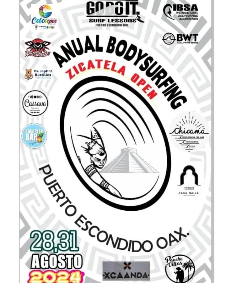 Anual Bodysurfing Zicatela Open You must open the event to see the results. STACT Live Score Puerto Escondido, Oaxaca. Started 472 days ago Wednesday28 August 2024 ends Saturday 31 August 2024 Save tomy calendar publik.in/e/65 219 Comments The comments reflect the personal opinions of users and do not represent the views of the site administrators. There's no comments yet Comment Leave your comment so that other users can know your opinion. 18 August « Carrera de Verano Zihuatanejo 2024 14 September TribuSURbanaS XHHZ 51 »